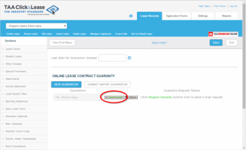 A guarantor has now been assigned to the lease. Click the Request Guaranty button next to the guarantor's name.